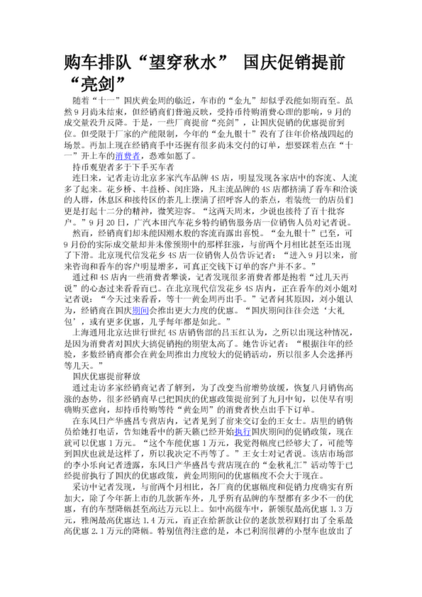 購車排隊“望穿秋水” 國慶促銷提前“亮劍”(24.37KB)