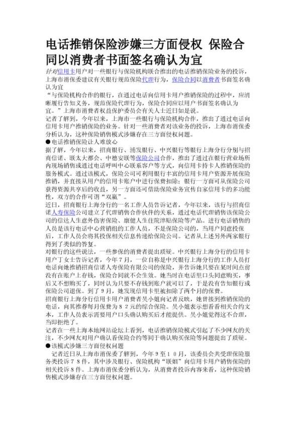 電話推銷保險涉嫌三方面侵權 保險合同以消費者書面簽名確認為宜