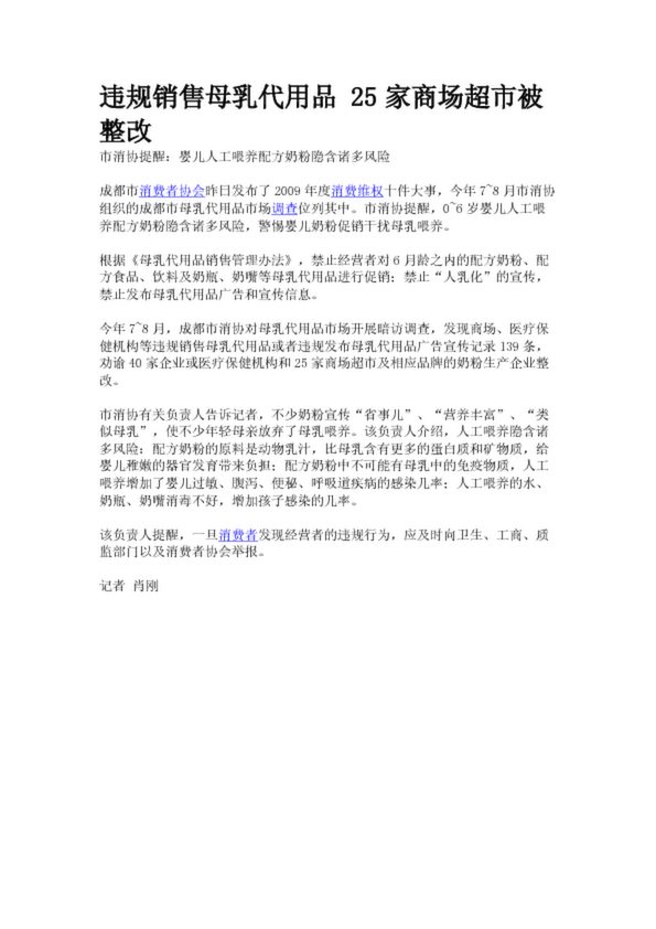 違規銷售母乳代用品 25家商場超市被整改(19.13KB)