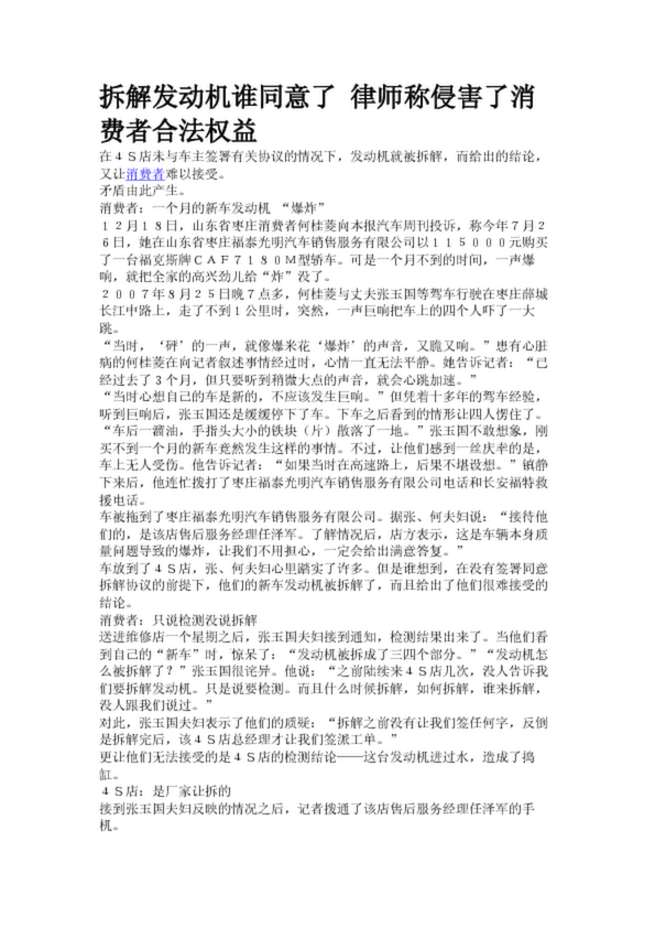拆解發動機誰同意了 律師稱侵害了消費者合法權益