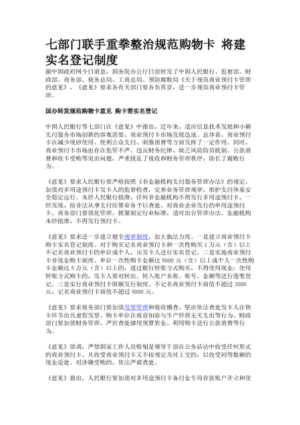 七部門聯手重拳整治規范購物卡 將建實名登記制度