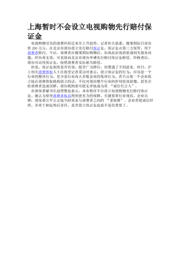 上海暫時不會設立電視購物先行賠付保證金(17.69KB)