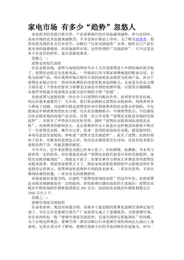 家電市場 有多少“趨勢”忽悠人