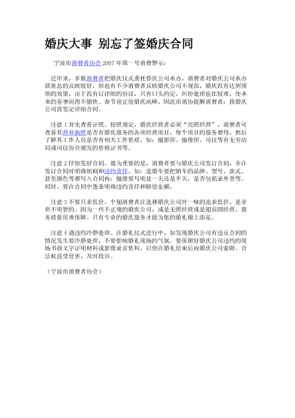 婚慶大事 別忘了簽婚慶合同