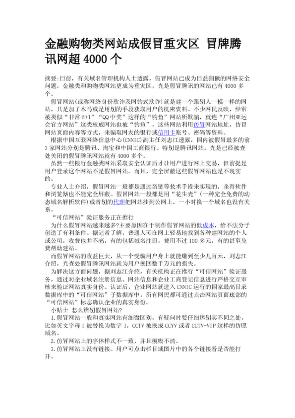 金融購物類網站成假冒重災區 冒牌騰訊網超4000個(21.43KB)
