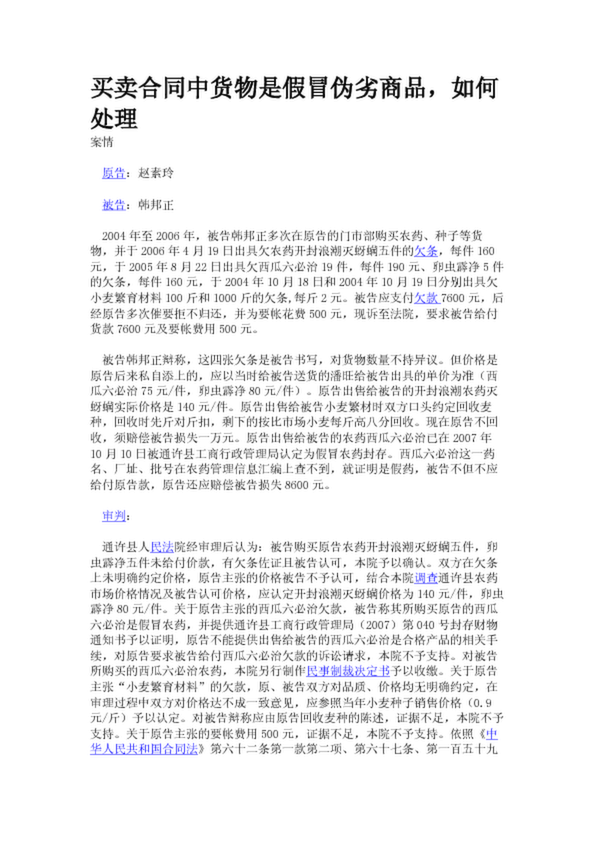 買賣合同中貨物是假冒偽劣商品,如何處理(28.47KB)