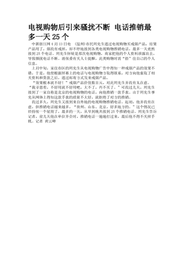 電視購物后引來騷擾不斷 電話推銷最多一天25個(16.81KB)