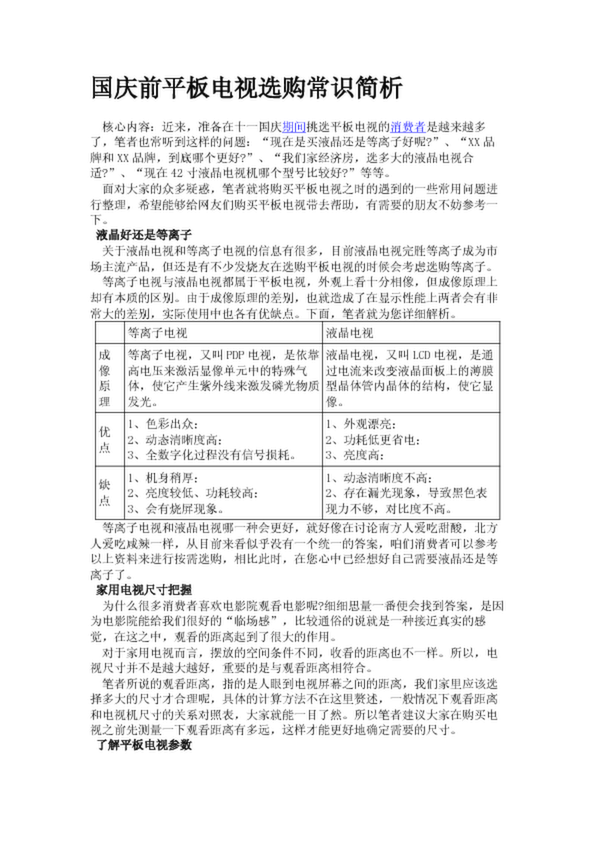 國慶前平板電視選購常識簡析(42.88KB)
