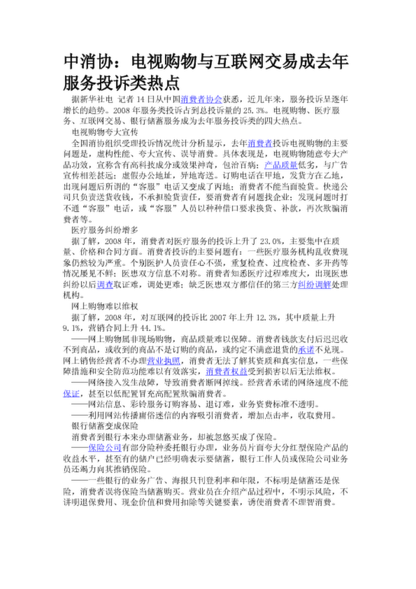 中消協:電視購物與互聯網交易成去年服務投訴類熱點