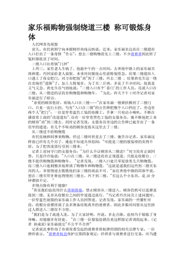 家樂福購(gòu)物強(qiáng)制繞道三樓 稱可鍛煉身體