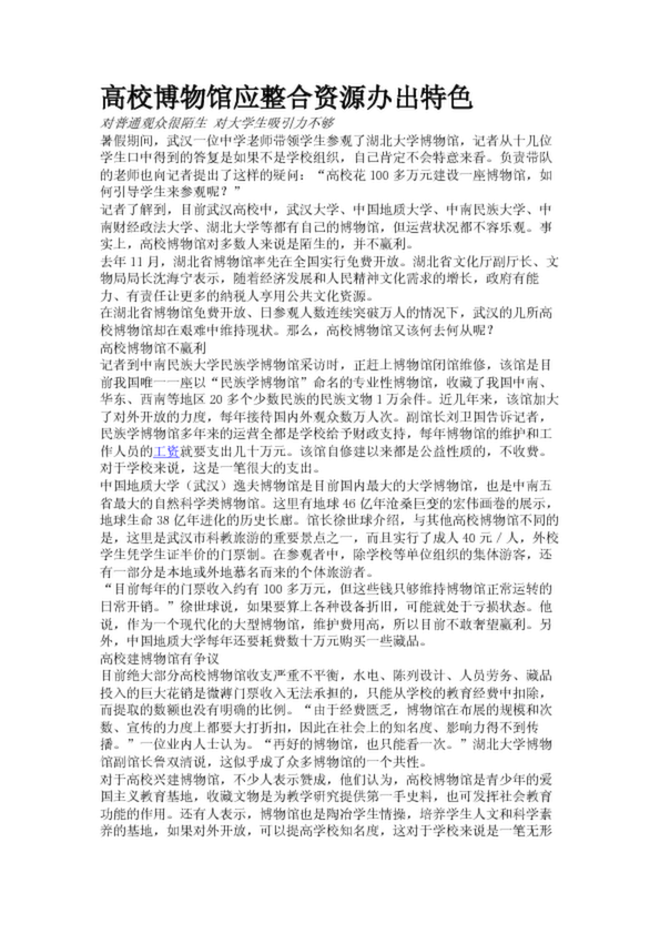 高校博物館應整合資源辦出特色