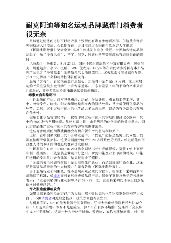 耐克阿迪等知名運(yùn)動(dòng)品牌藏毒門消費(fèi)者很無奈