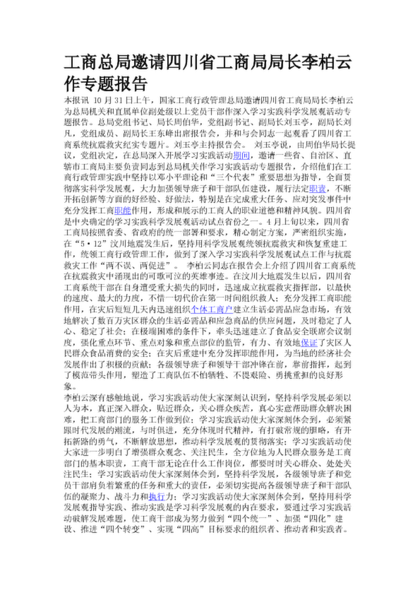 工商總局邀請(qǐng)四川省工商局局長李柏云作專題報(bào)告