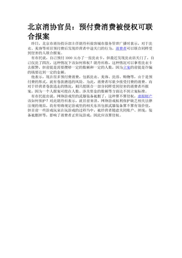 北京消協(xié)官員:預(yù)付費(fèi)消費(fèi)被侵權(quán)可聯(lián)合報案
