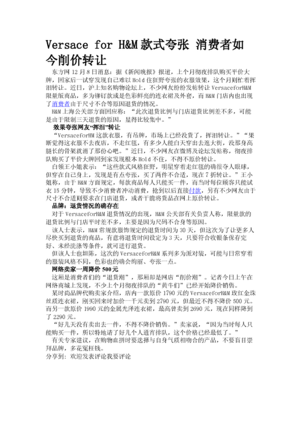 Versace for H&M款式夸張 消費(fèi)者如今削價(jià)轉(zhuǎn)讓(22.17KB)