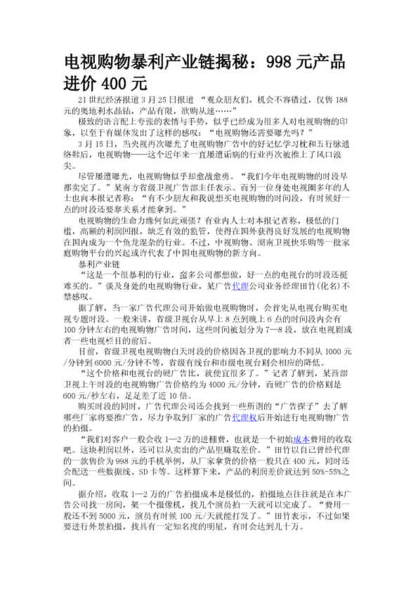 電視購物暴利產(chǎn)業(yè)鏈揭秘:998元產(chǎn)品進(jìn)價400元