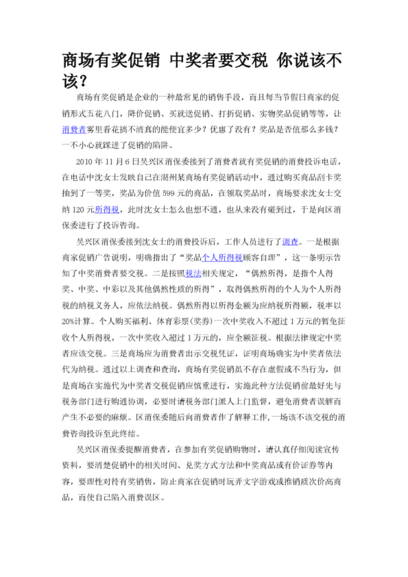 商場有獎促銷 中獎者要交稅 你說該不該?