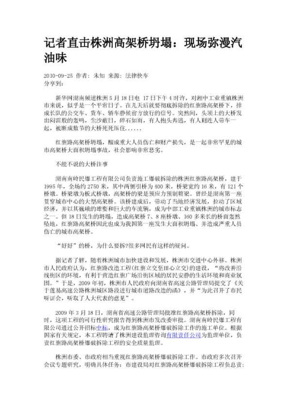 記者直擊株洲高架橋坍塌:現場彌漫汽油味