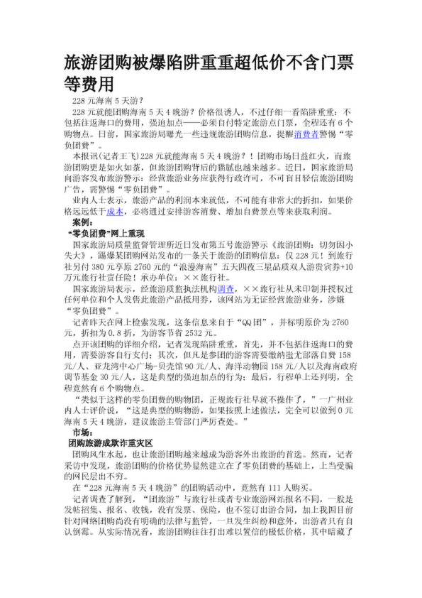 旅游團(tuán)購(gòu)被爆陷阱重重超低價(jià)不含門票等費(fèi)用