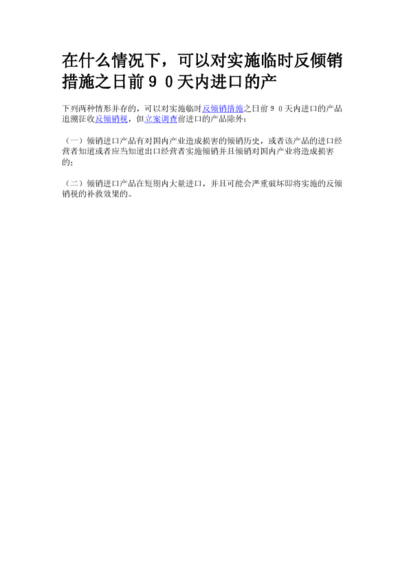 在什么情況下,可以對實施臨時反傾銷措施之日前90天內進口的產(17.37KB)