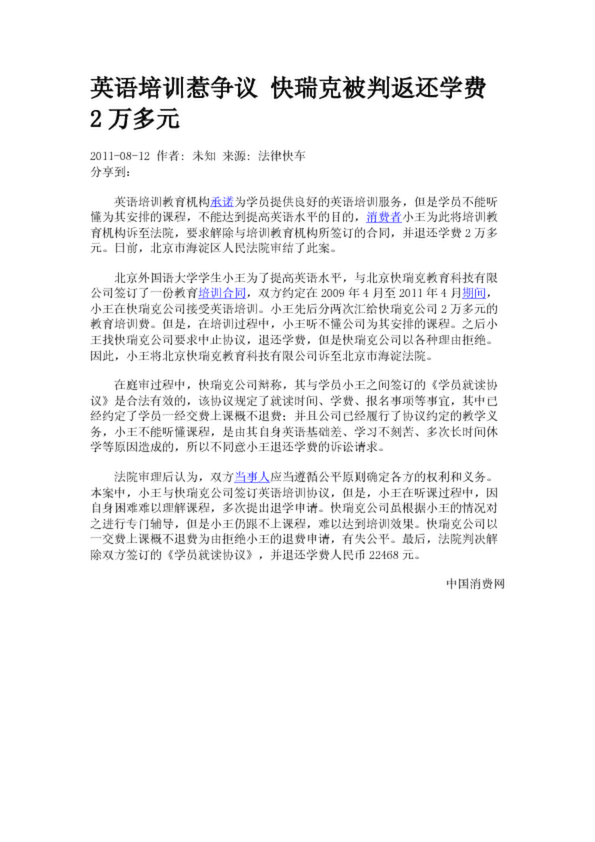 英語培訓惹爭議 快瑞克被判返還學費2萬多元