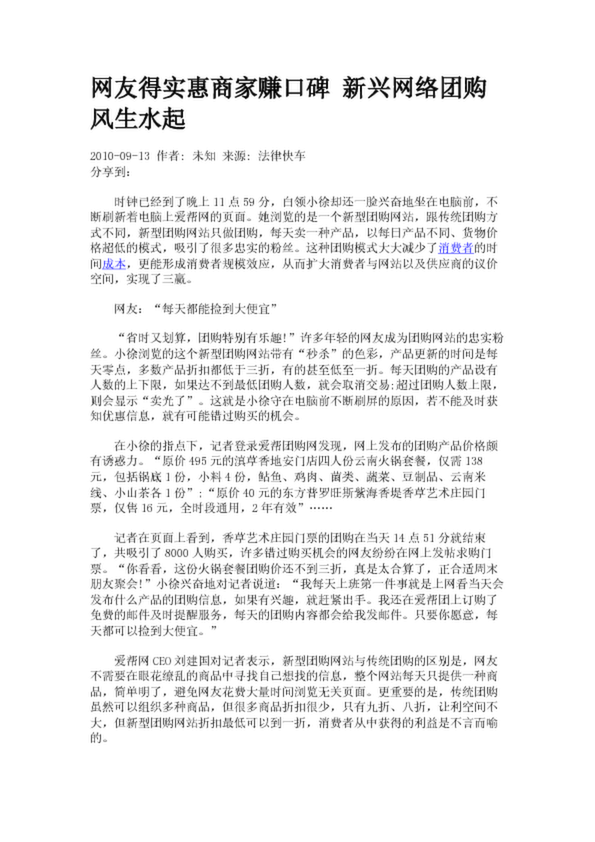 網友得實惠商家賺口碑 新興網絡團購風生水起(6.68KB)