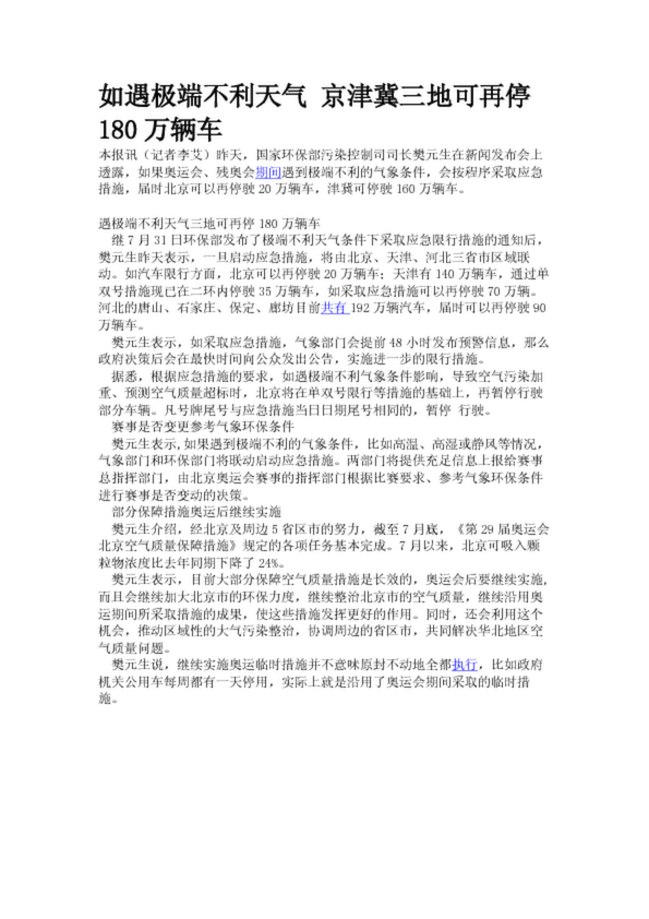 如遇極端不利天氣 京津冀三地可再停180萬輛車(20.14KB)