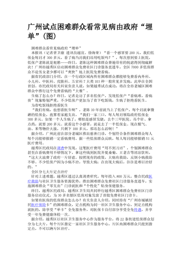 廣州試點困難群眾看常見病由政府“埋單”(圖)(24.43KB)