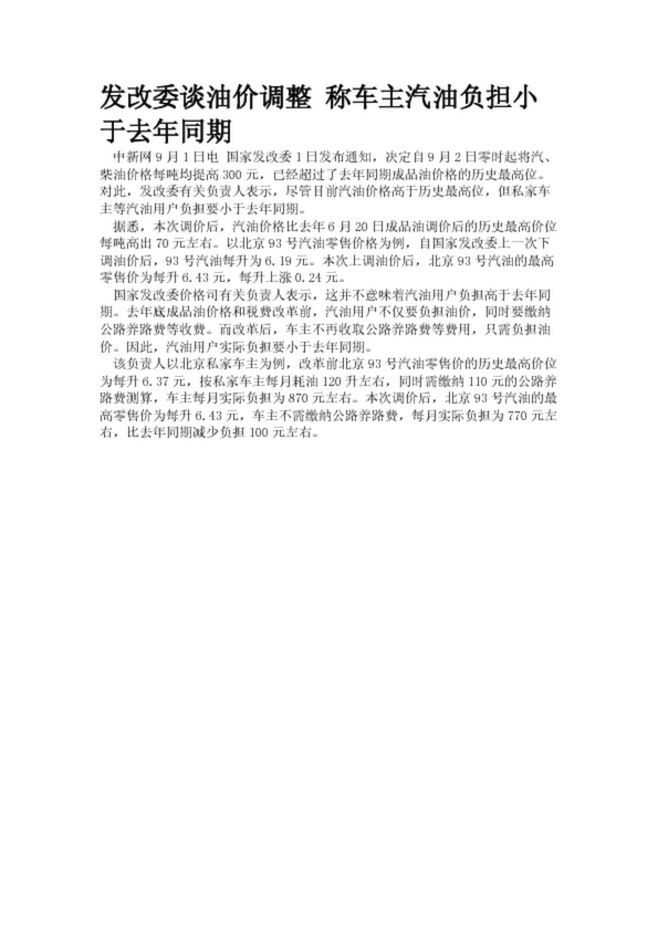 發(fā)改委談?dòng)蛢r(jià)調(diào)整 稱車主汽油負(fù)擔(dān)小于去年同期(16.77KB)