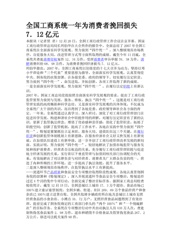 全國工商系統(tǒng)一年為消費者挽回損失7.12億元