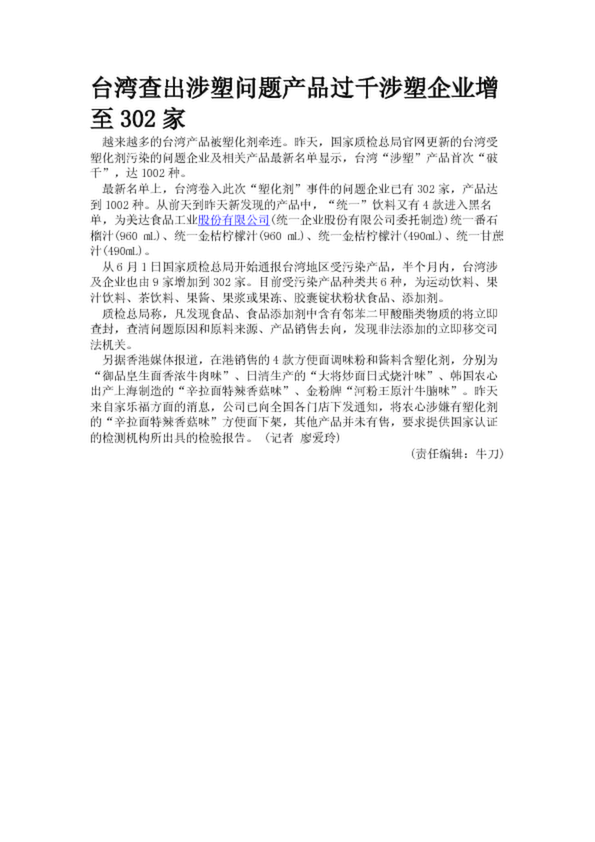 臺灣查出涉塑問題產品過千涉塑企業增至302家(17.88KB)
