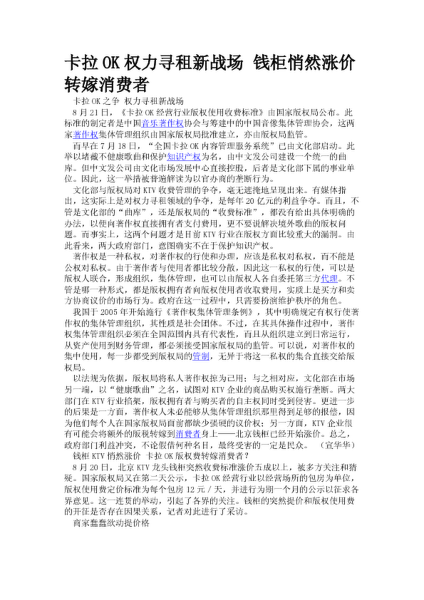 卡拉OK權力尋租新戰場 錢柜悄然漲價轉嫁消費者(28.23KB)