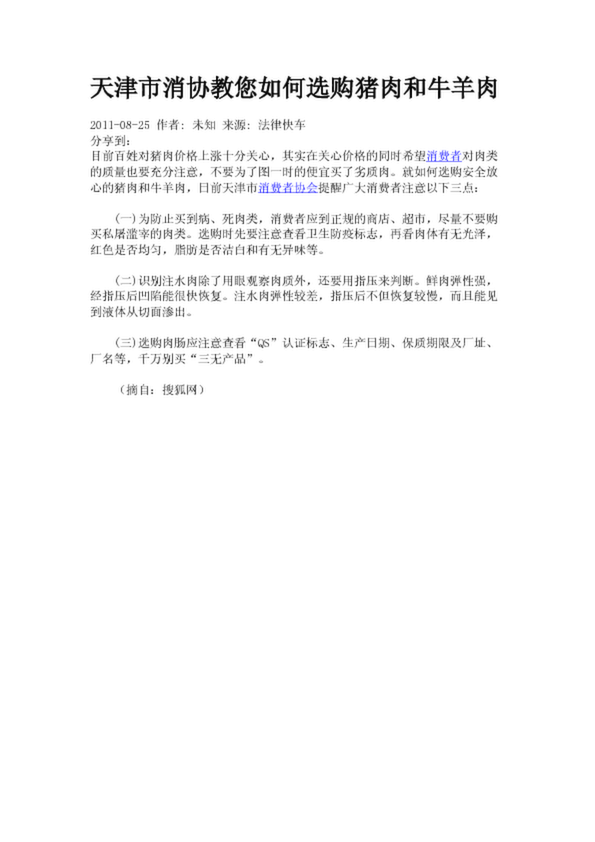 天津市消協教您如何選購豬肉和牛羊肉(2.58KB)