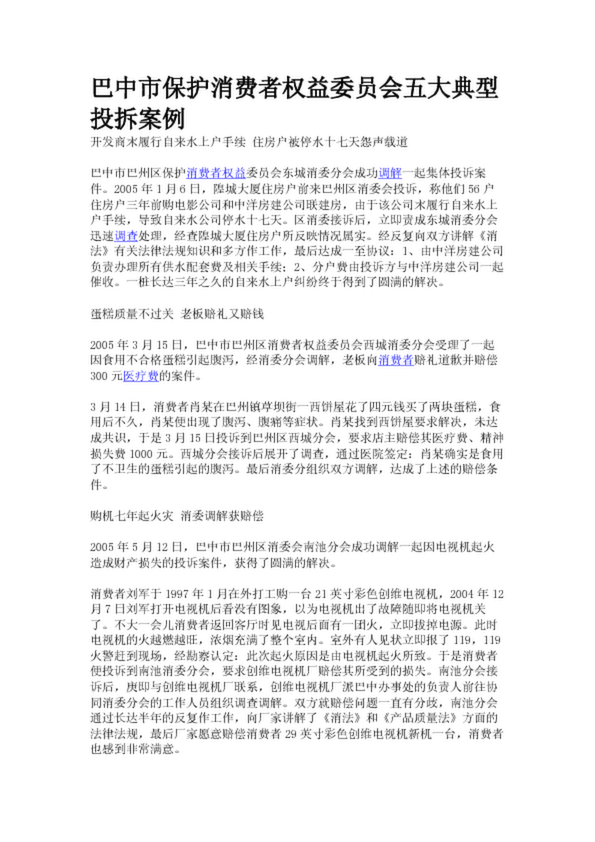 巴中市保護消費者權益委員會五大典型投拆案例(22.90KB)