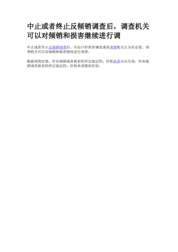 中止或者終止反傾銷調查后,調查機關可以對傾銷和損害繼續進行調