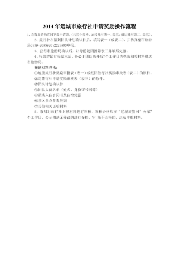 2014年運(yùn)城市旅行社申請獎勵操作流程