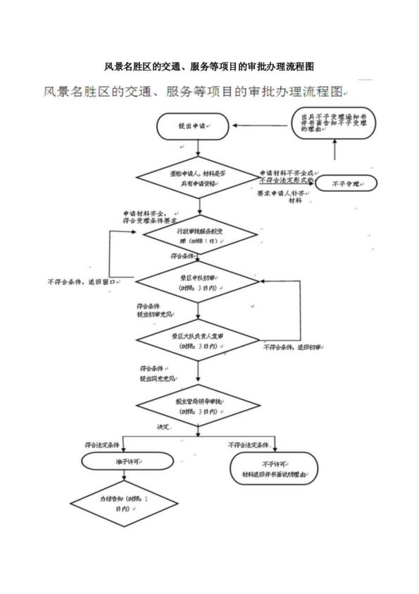 風(fēng)景名勝區(qū)的交通、服務(wù)等項(xiàng)目的審批辦理流程圖