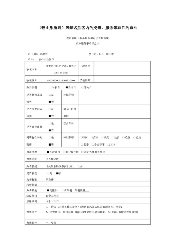 (韶山旅游局)風(fēng)景名勝區(qū)內(nèi)的交通、服務(wù)等項目的審批