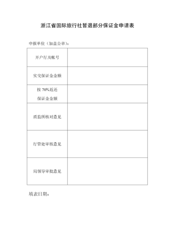 浙江省旅行社暫退部分保證金申請表