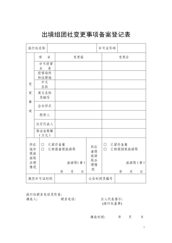 國際旅行社變更事項備案登記表