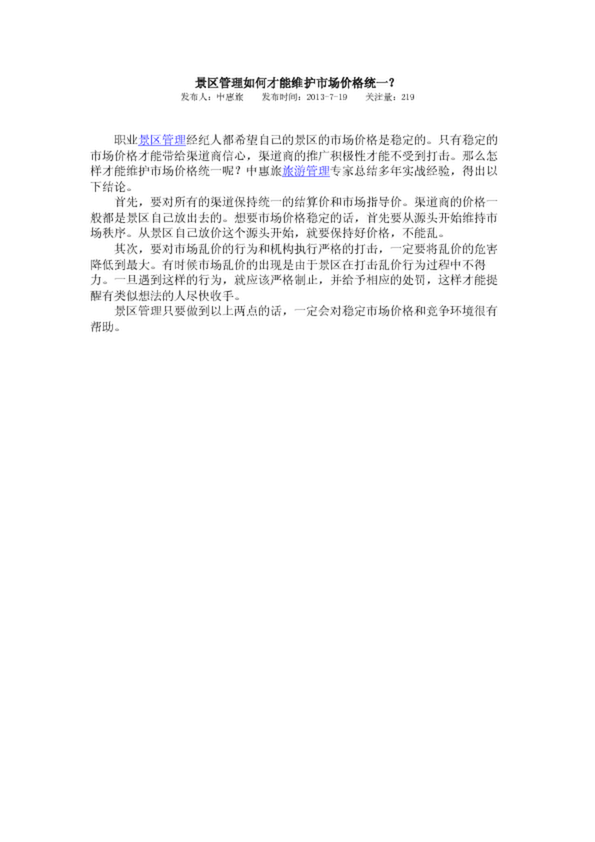 景區管理如何才能維護市場價格統一?(1.55KB)
