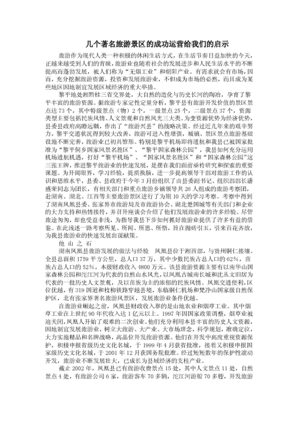 幾個著名旅游景區的成功運營給我們的啟示(41.50KB)