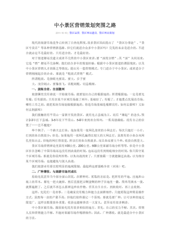 中小景區營銷策劃突圍之路