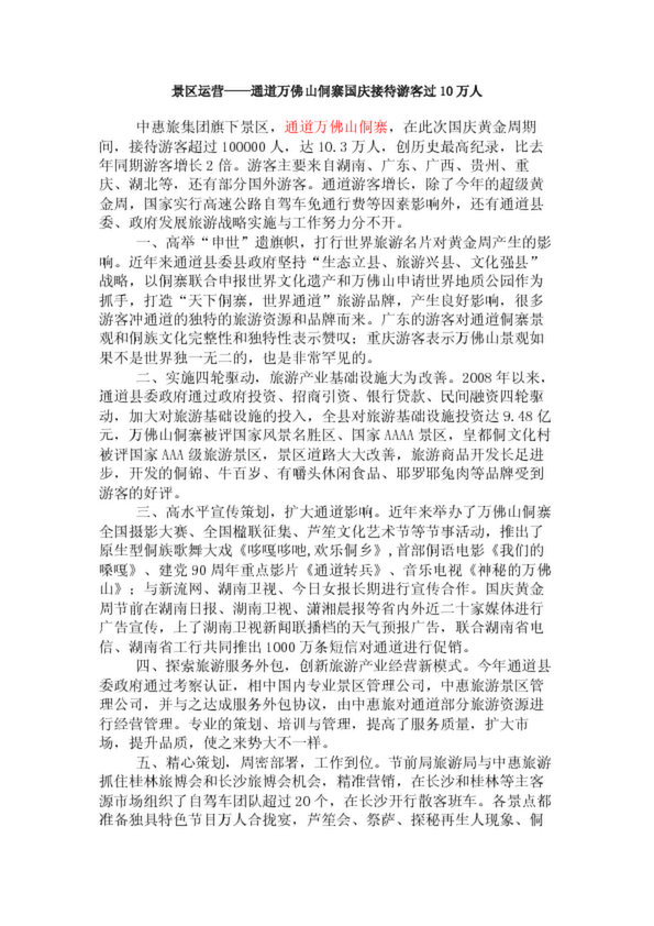 景區運營——通道萬佛山侗寨國慶接待游客過10萬人(18.96KB)