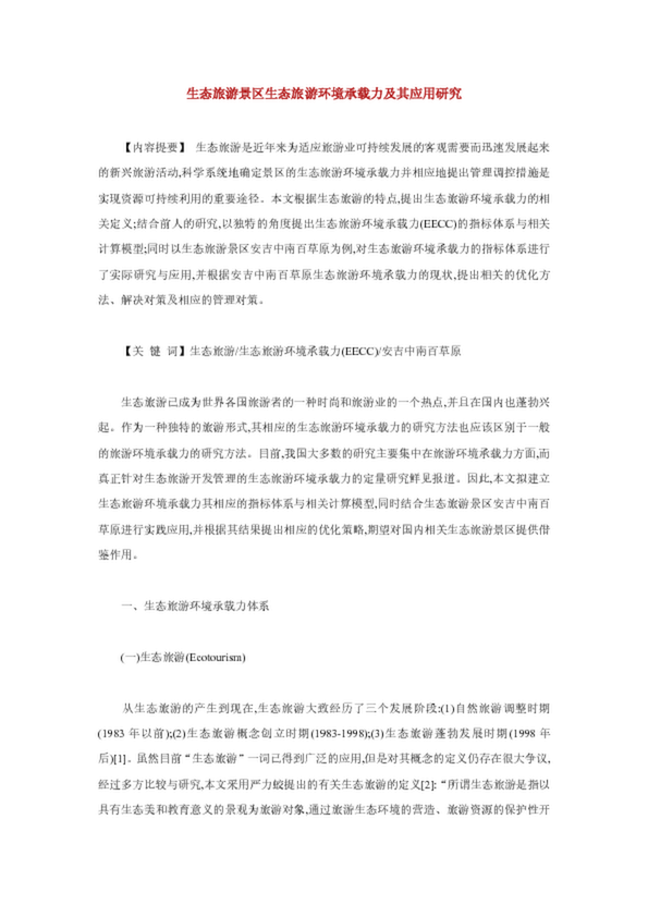生態旅游景區生態旅游環境承載力及其應用研究(30.50KB)