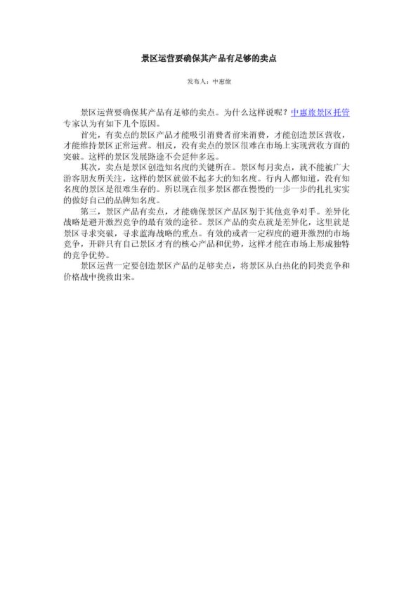 景區運營要確保其產品有足夠的賣點(18.73KB)