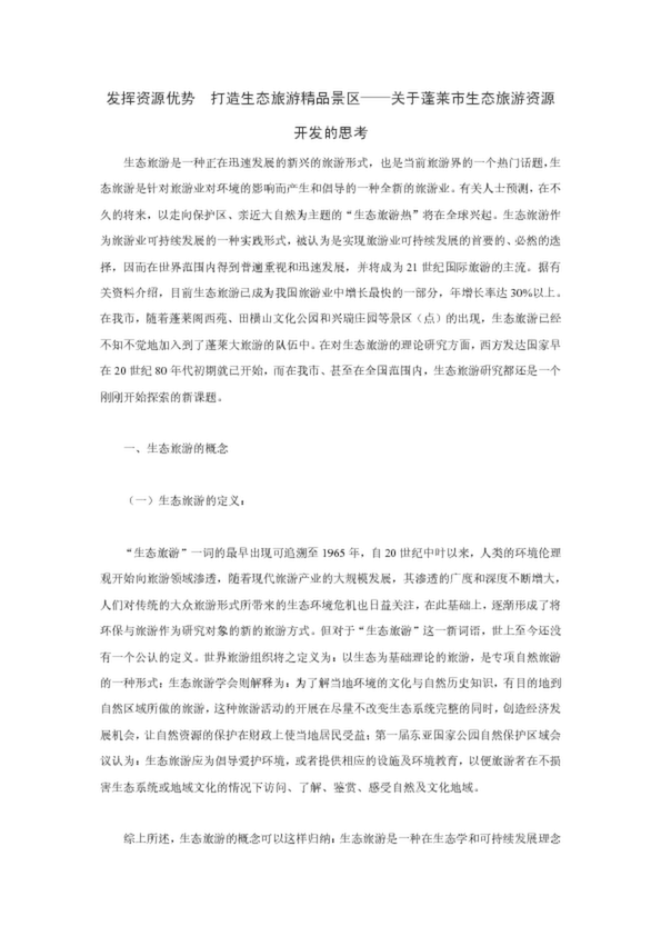 發揮資源優勢 打造生態旅游精品景區——關于蓬萊市生態旅游資源開發的思考