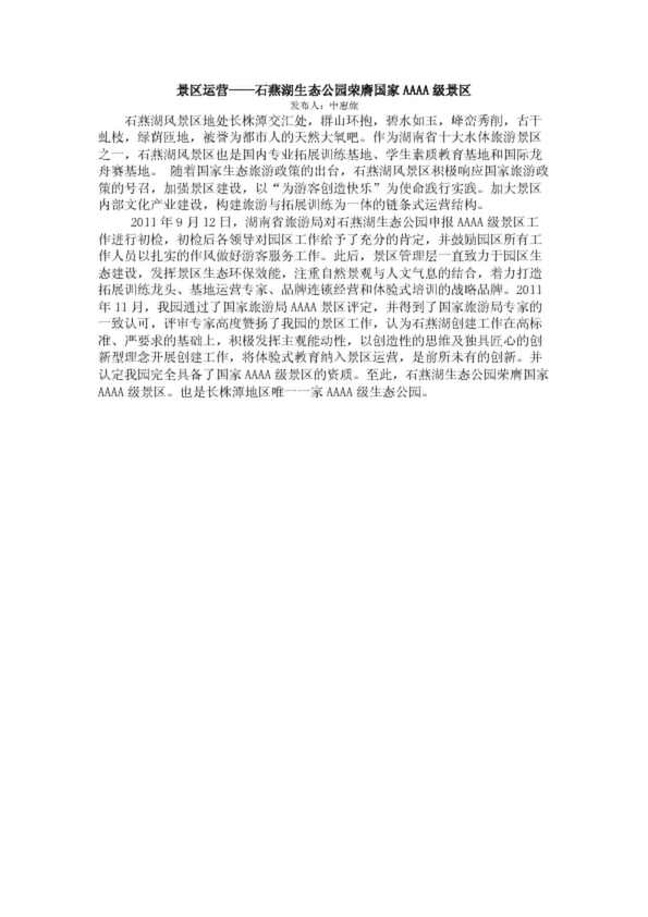 景區運營——石燕湖生態公園榮膺國家AAAA級景區(17.16KB)