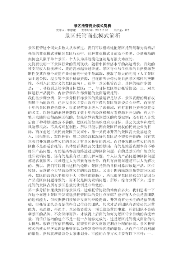 景區托管商業模式簡析