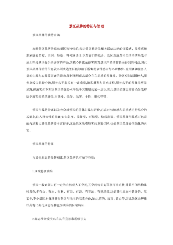 景區品牌的特征與管理